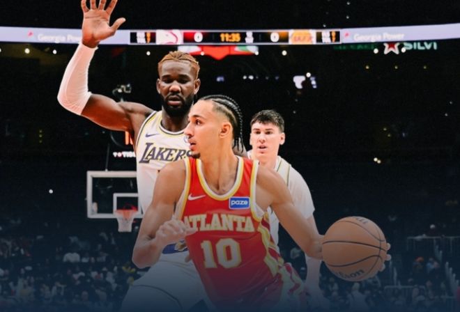 但比赛开始后,局势却一边倒向主场作战的老鹰。球队新星盖耶状态爆棚,开场便 4 投 4 中迅速轰下 11 分,带领老鹰早早将分差拉开到两位数。次节双方命中率均有下滑,但湖人始终处于被动追赶的态势,半场结束时仍落后 14 分。
